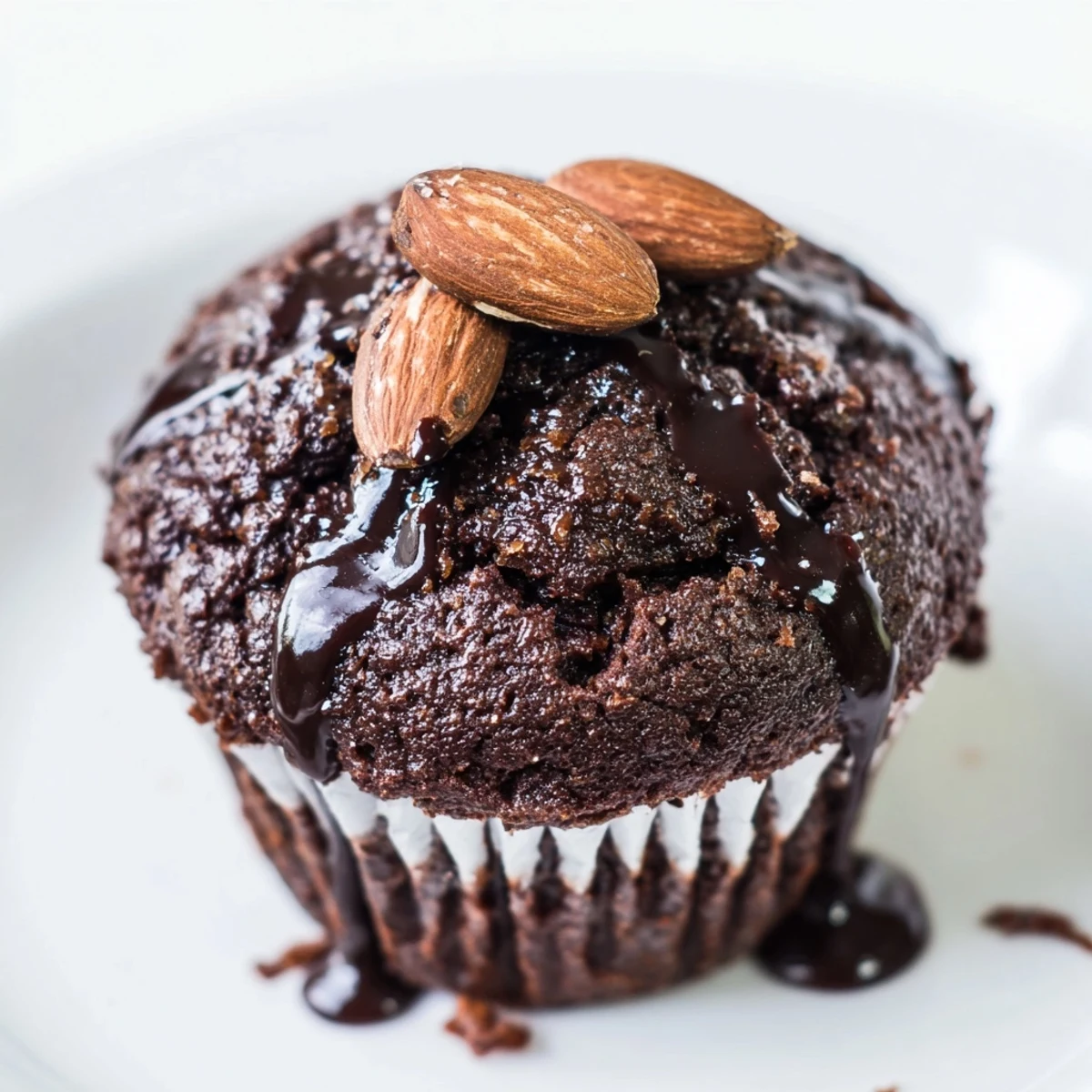 - Top each cupcake with 2 almonds then melt remaining chocolate and drizzle generously over everything