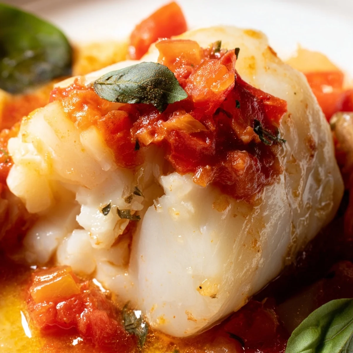 - Spoon extra sauce over each fillet, tuck in fresh basil leaves, and set lemon wedges alongside for squeezing at the table