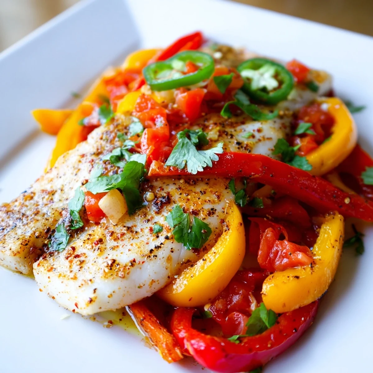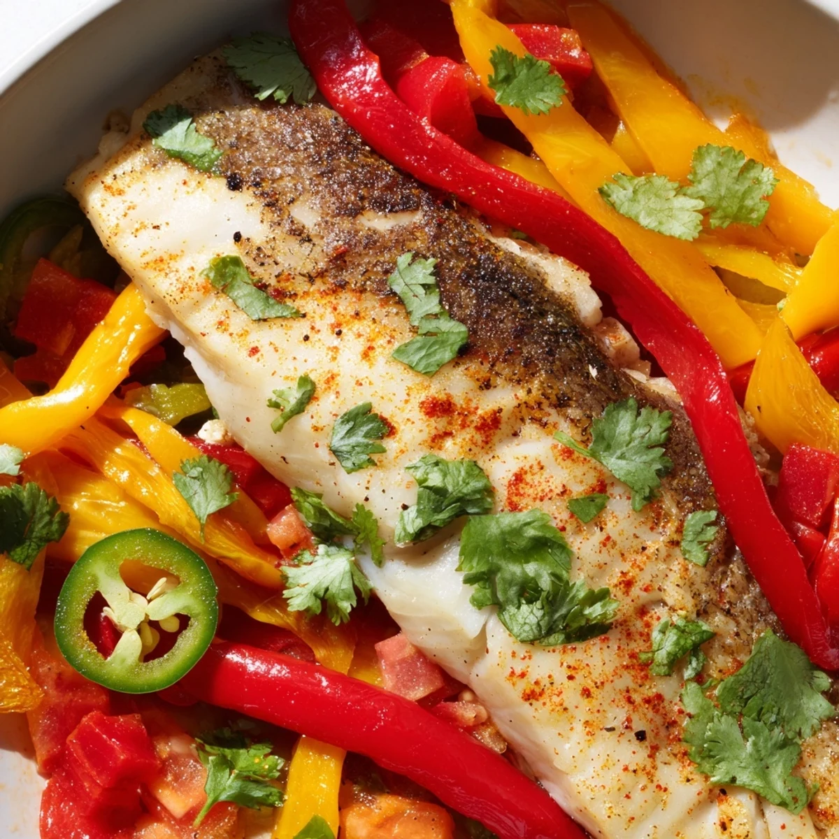 This vibrant skillet combines tender tilapia with a medley of roasted red and yellow peppers, enhanced by jalapeño heat and aromatic spices. The dish comes together in just 35 minutes, making it perfect for busy weeknights when you crave something bold and satisfying.